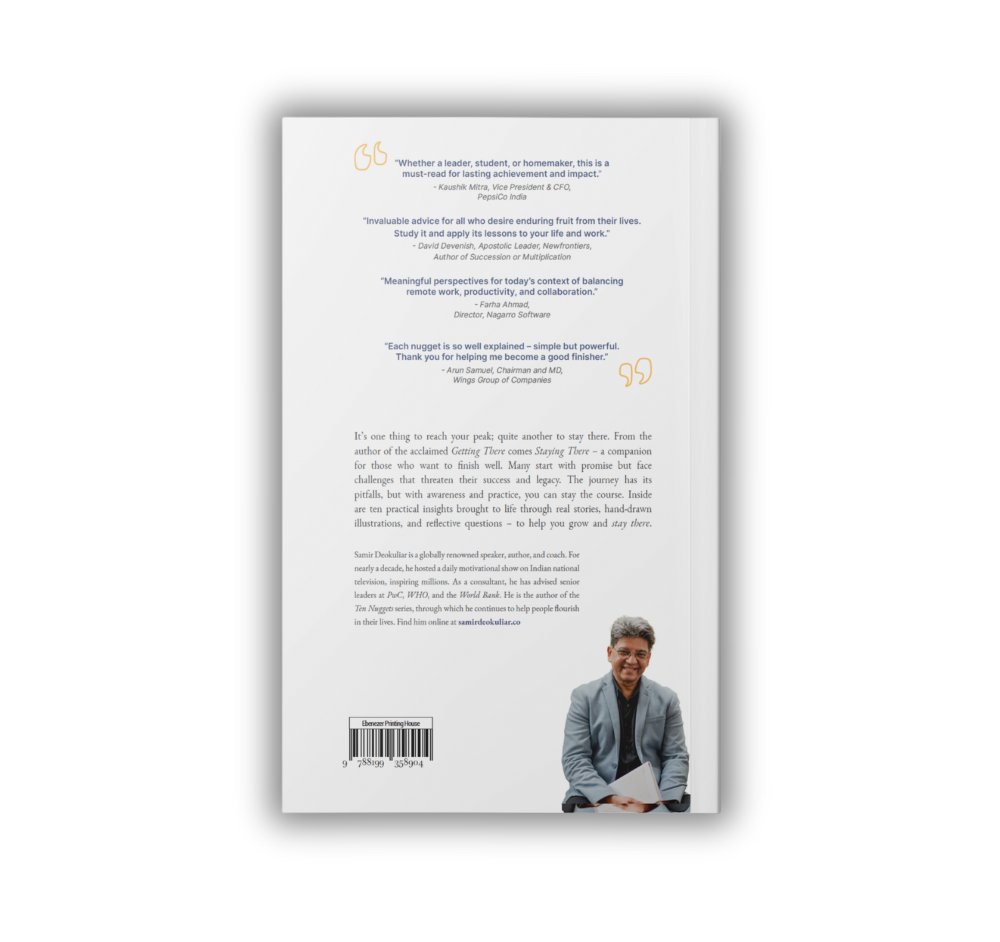 In this powerful follow-up to his acclaimed book Getting There, Samir Deokuliar explores what it takes to sustain character, integrity, and purpose once the applause fades. Drawing from real-life stories, leadership lessons, and personal reflection, Staying There offers ten practical principles to help you navigate life’s pressures without losing your way.